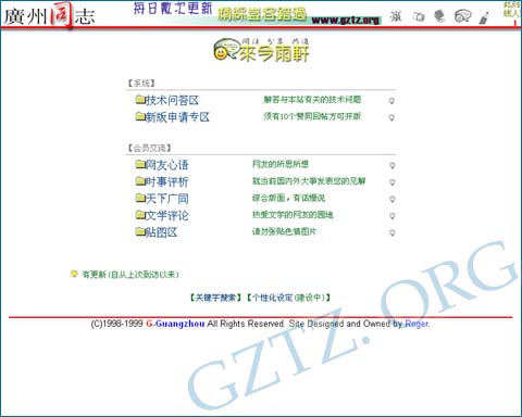 广同最早的论坛设计完成,名叫“来今语轩”,设有“网友心语”、“时事评析”、“天下广同”、“文学评论”和“贴图区”等板块。