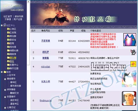社区充满游戏特色,通过各种游戏内容可以不断提高级别,图为显示级别排名的“练功狂人榜”。