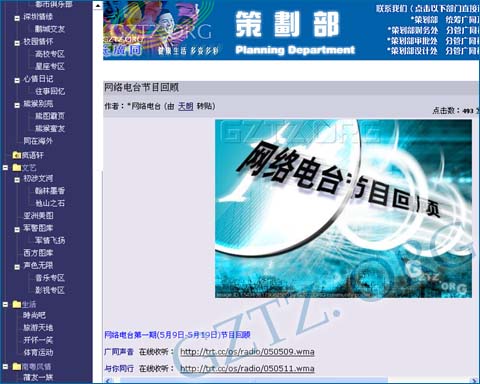 由策划部主管天朗负责组建的网络电台开始试播。网络电台从3月28日开始筹备、策划,经过4个月时间,到7月30日试播结束,共推出6期共37档节目,合共节目播放时间约1850分钟,参与电台工作人员接近40人。